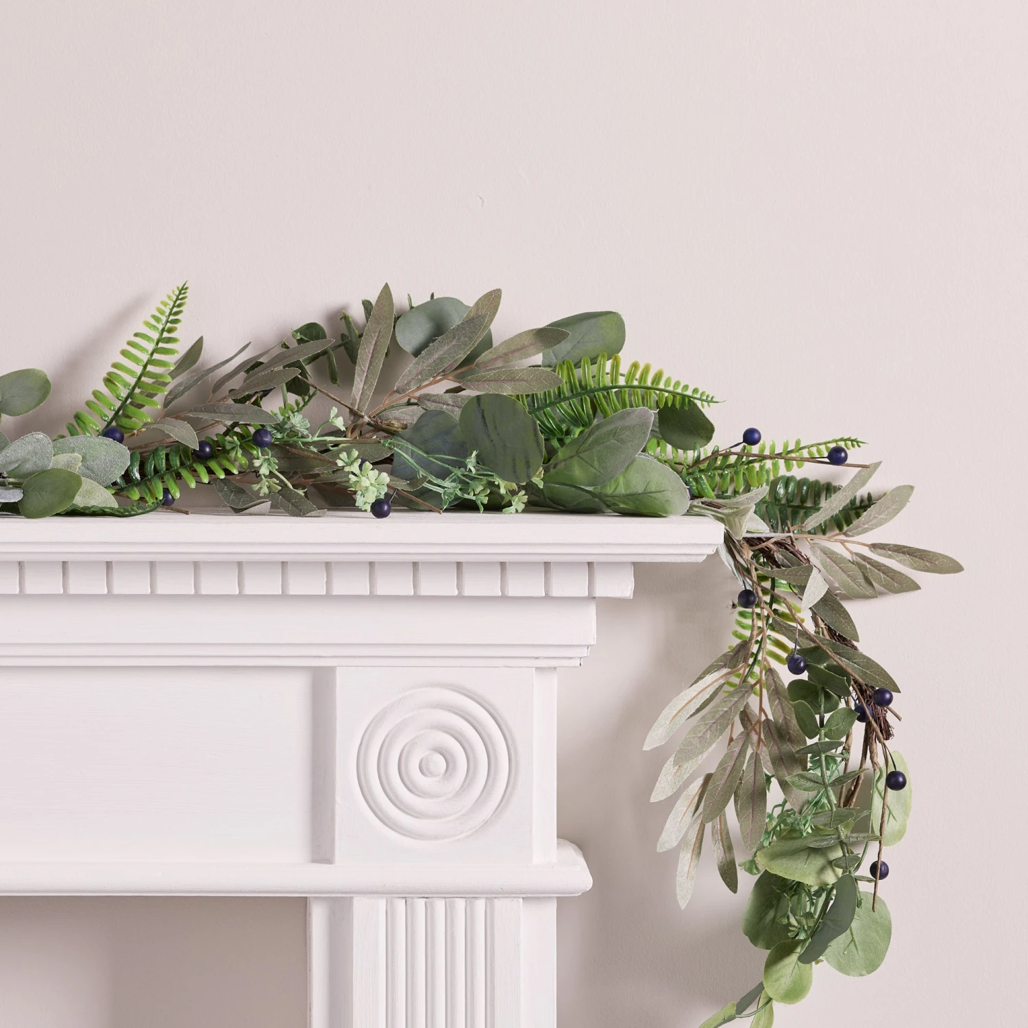 Unsere Girlande mit blauen Beeren sorgt zu Weihnachten für einen klassischen, festlichen Look und sieht fantastisch aus wo immer du sie platzierst! Die 1,5m lange Girlande macht sich toll auf einem Regal oder dem Kaminsims. Alternativ kannst du sie in der Mitte des Weihnachtstisches drapieren. Winde eine unserer Micro Lichterketten um sie, um ihr zusätzlich festlichen Glanz zu verleihen. Mit den verschiedenen Kunstblättern und dezenten blauen Beeren steht die Girlande einer echten Girlande in nichts nach – sie hat jedoch den Vorteil, dass sie Jahr für Jahr wieder verwendet werden kann.