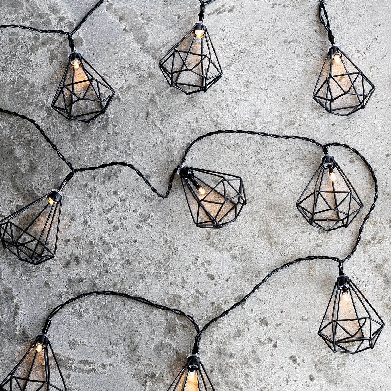 Minimalismus, neutrale Töne und Geradlinigkeit sind typische Merkmale des Urban Styles. All diese Merkmale treffen bei unserer Diamanten Lichterkette zusammen und sorgen somit für schlichte Klarheit. Jeder der 10 geometrischen Diamanten wird von einer warmweißen LED beleuchtet.