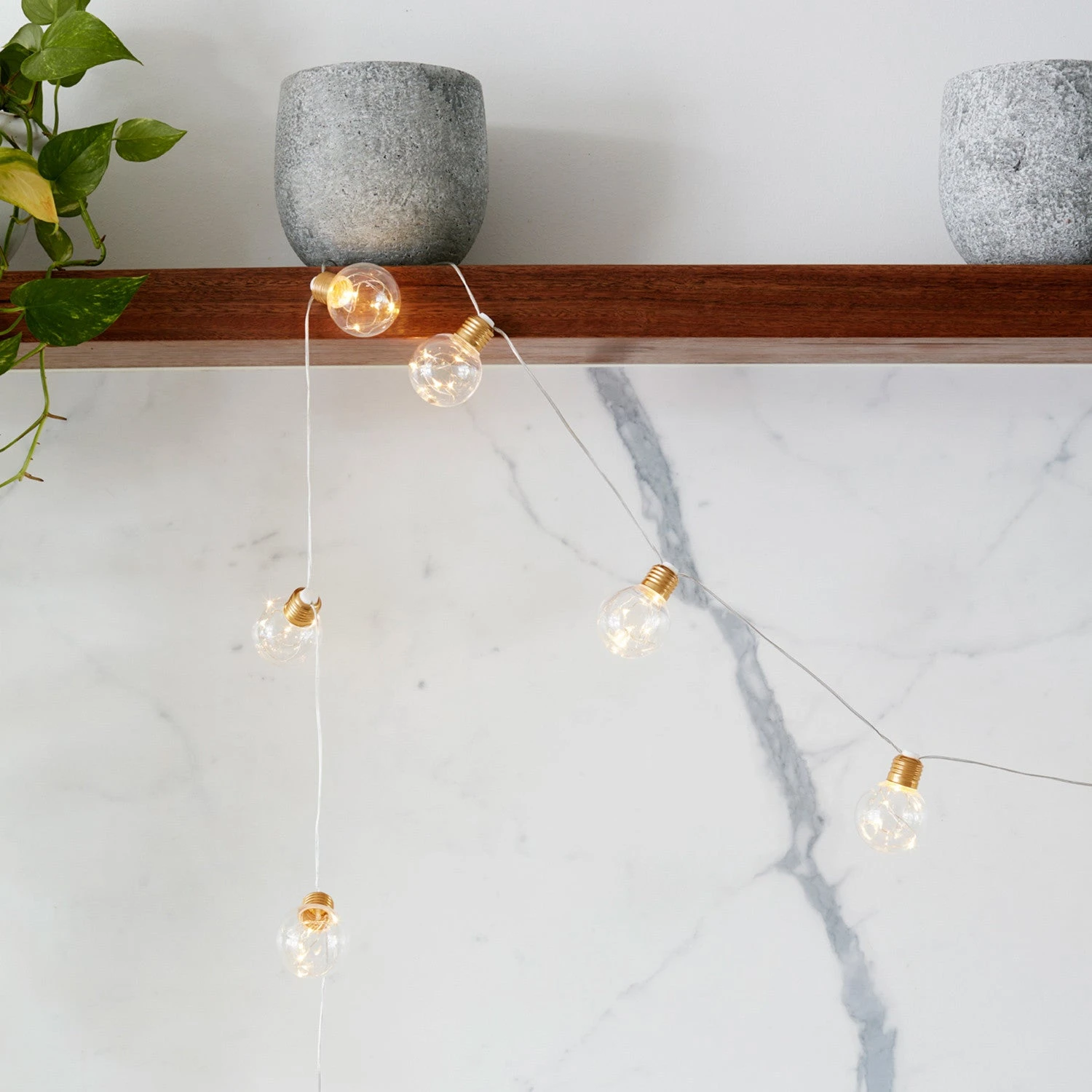 Mit ihrer Kupferoptik liegt diese Glühbirnen Lichterkette voll im Trend. Im Inneren jeder der 10 Birnen befindet sich eine Micro Lichterkette, diese wird von 5 warmweißen LED beleuchtet – ein wirklich stylischer Hingucker.