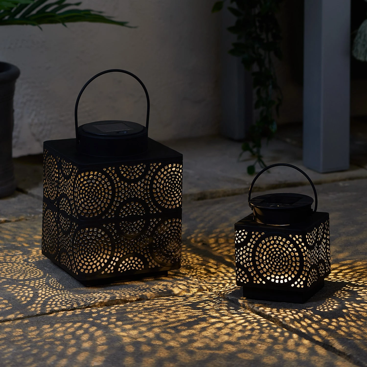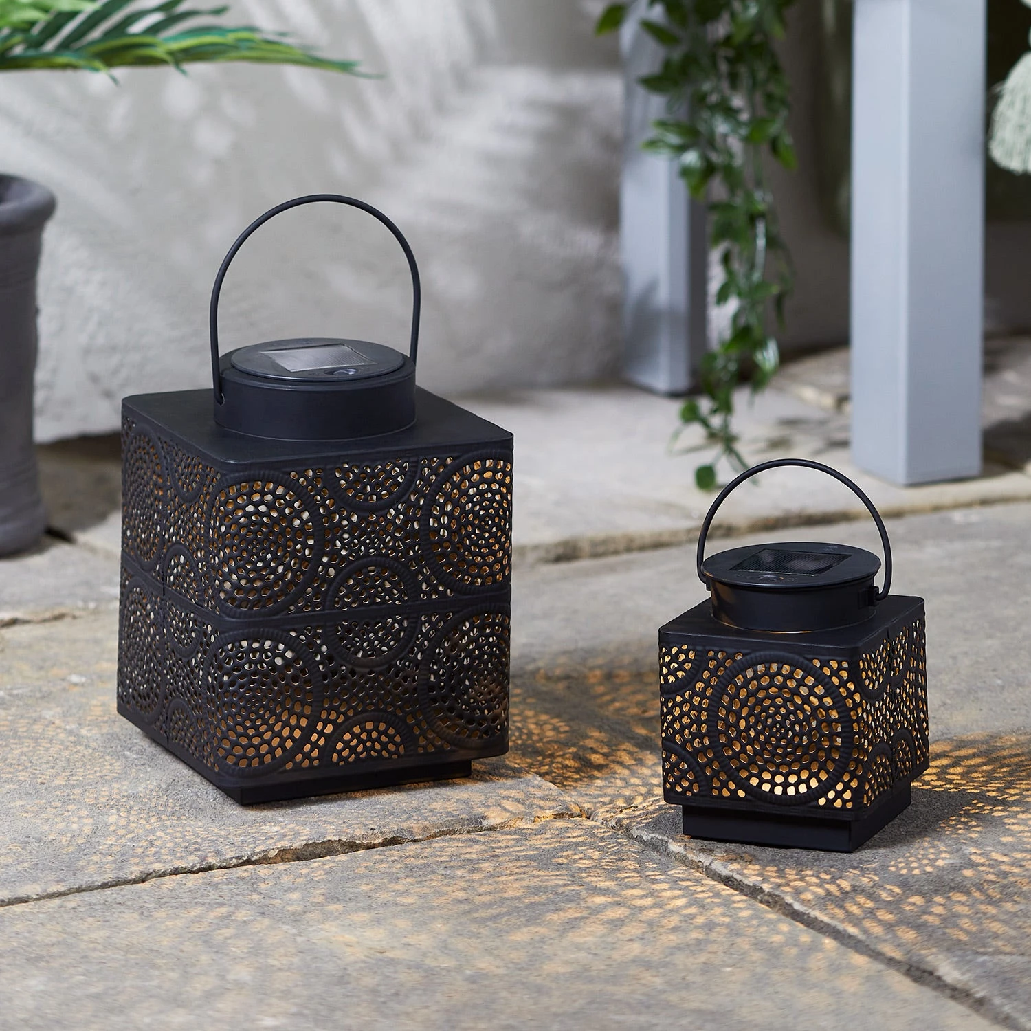 Mach diesen Sommer Urlaub im eigenen Garten und sorge für marokkanisches Flair mit unseren solarbetriebenen Taza Laternen! Mit ihren unterschiedlichen Höhen von 19,5cm und 12cm lassen sie sich wunderbar kombinieren. Das rechteckige Design und das feine Cut-Out-Muster verleihen ihnen einen besonderen Look – die ideale Deko für Gartentische oder die Terrasse. Platziere sie einfach an einer sonnigen Stelle, damit sie tagsüber vollständig aufladen können. Bei Einbruch der Dunkelheit verbreiten sie dann ein sanftes, warmweißes Licht und du kannst jeden Abend mit bis zu 8 Stunden Leuchtdauer rechnen!