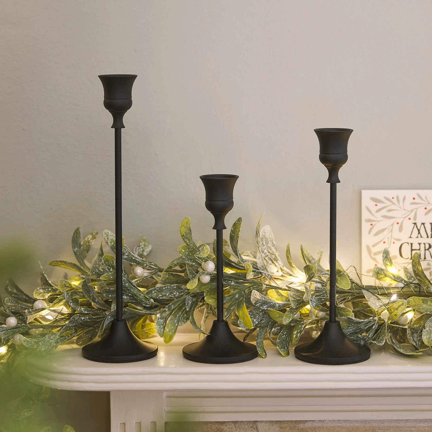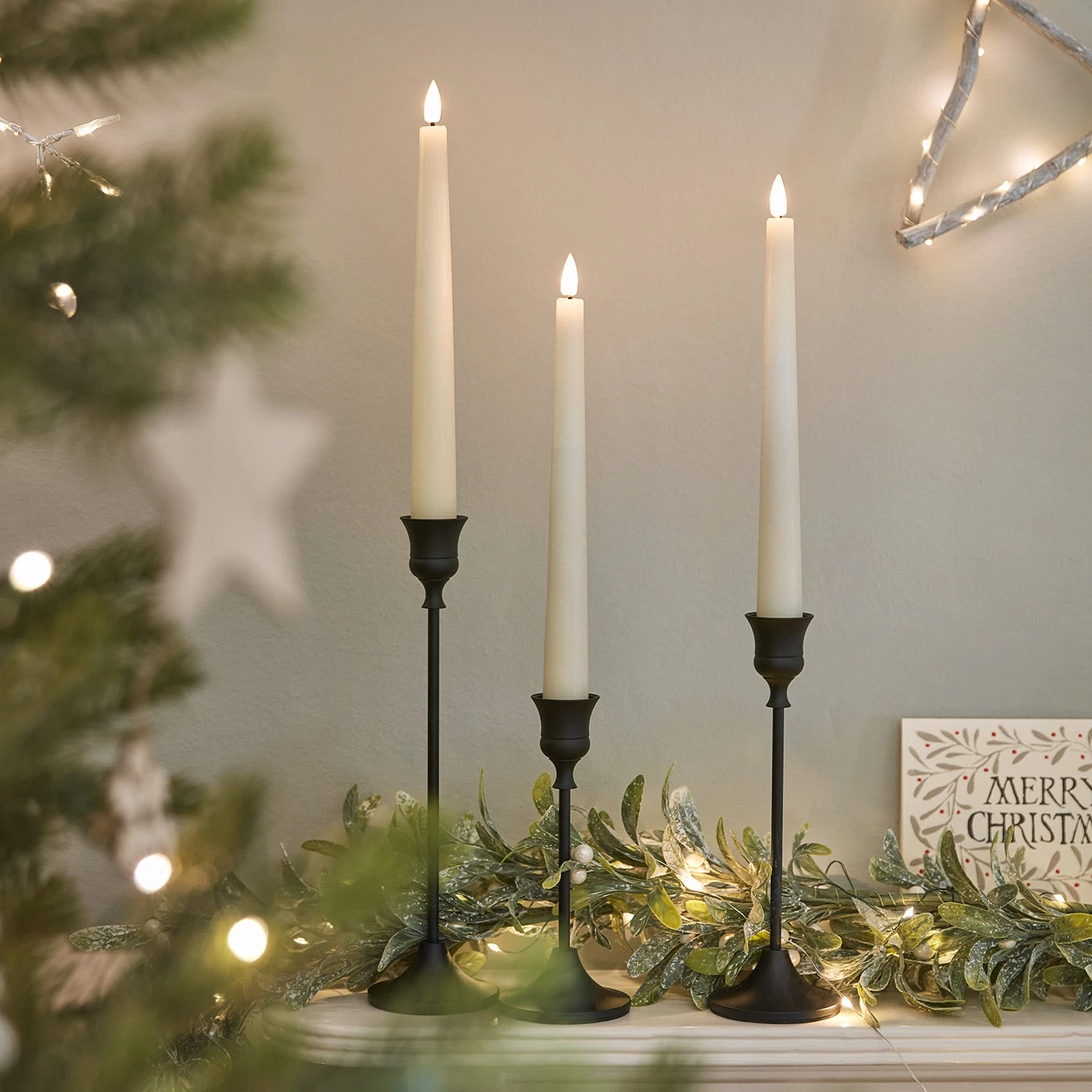 Verleihe deinem Zuhause mit unserem 3er Set Kerzenhalter in elegantem Schwarz eine warme und gemütliche Atmosphäre. Diese stilvollen Kerzenhalter können mit unseren TruGlow® Stabkerzen kombiniert werden und werden sicherlich ein Blickfang in deinem Raum sein. Mit ihrem schlichten, zeitlosen Design passen sie zu jeder Einrichtung und schaffen ein angenehmes Ambiente.