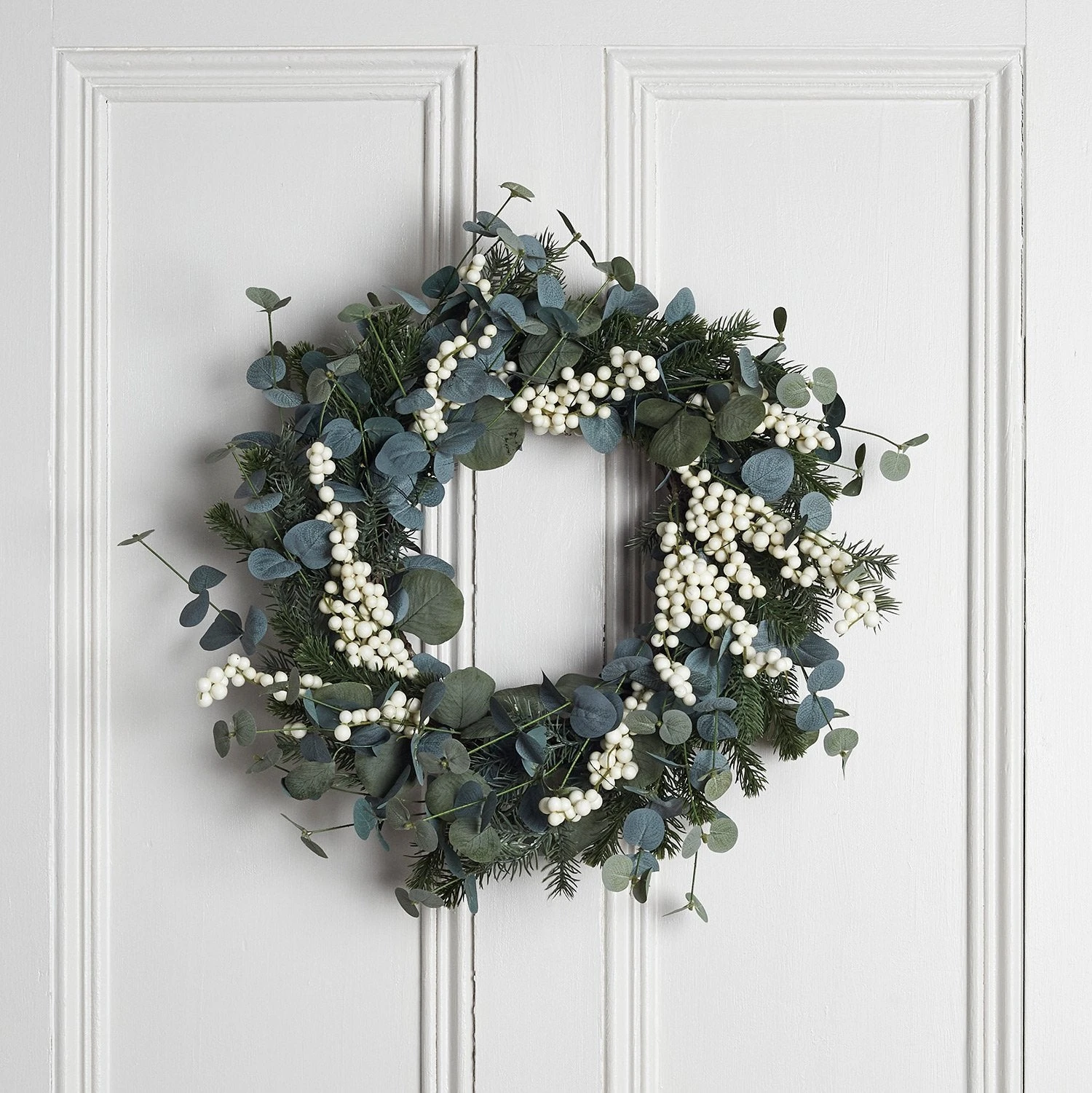 Weiße Beeren und Eukalyptusblätter machen unseren klassischen Kranz zu einem Dekofavoriten für die Weihnachtszeit. Mit seinem zeitlosen Look kannst du den Eukalyptuskranz jedes Jahr wieder in deine Deko integrieren. Mit einem Durchmesser von 50cm ist er perfekt für Tür oder Eingangsbereich und macht sich toll als Herzstück deiner Tischdeko. Kombiniere ihn mit Kerzen oder bringe ihn mit einer Lichterkette zum Leuchten.