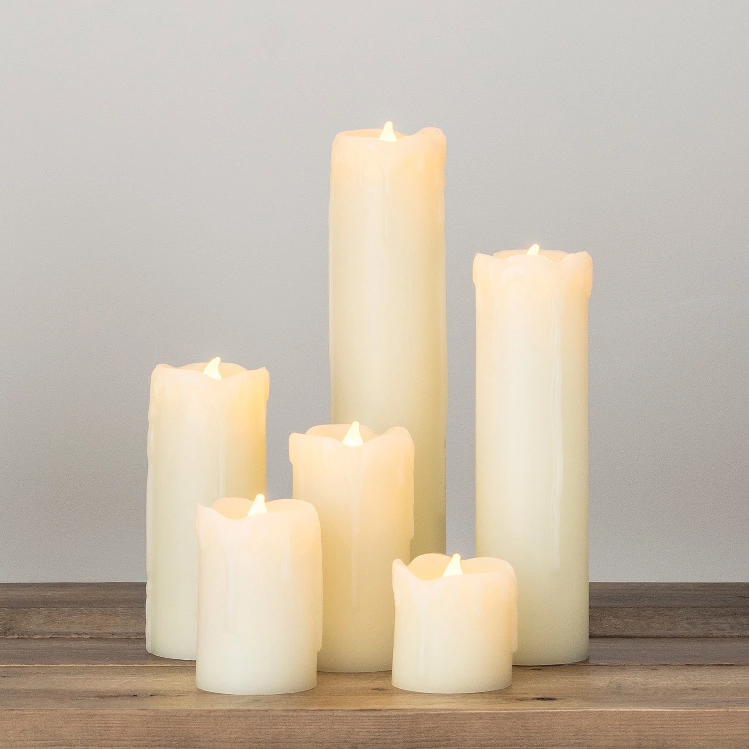 Die 6 Kerzen sind mit Wachstropfen verziert und sind am obernen Rand abgerundet, sodass sie echten Kerzen täuschend ähnlich sehen. Je eine warmweiß, flackernde LED lässt die Kerzen erstrahlen. Die LEDs werden nicht warm, sodass die Kerzen auch problemlos in Kombination mit Stoffen und anderen Textilien verwendet werden können.