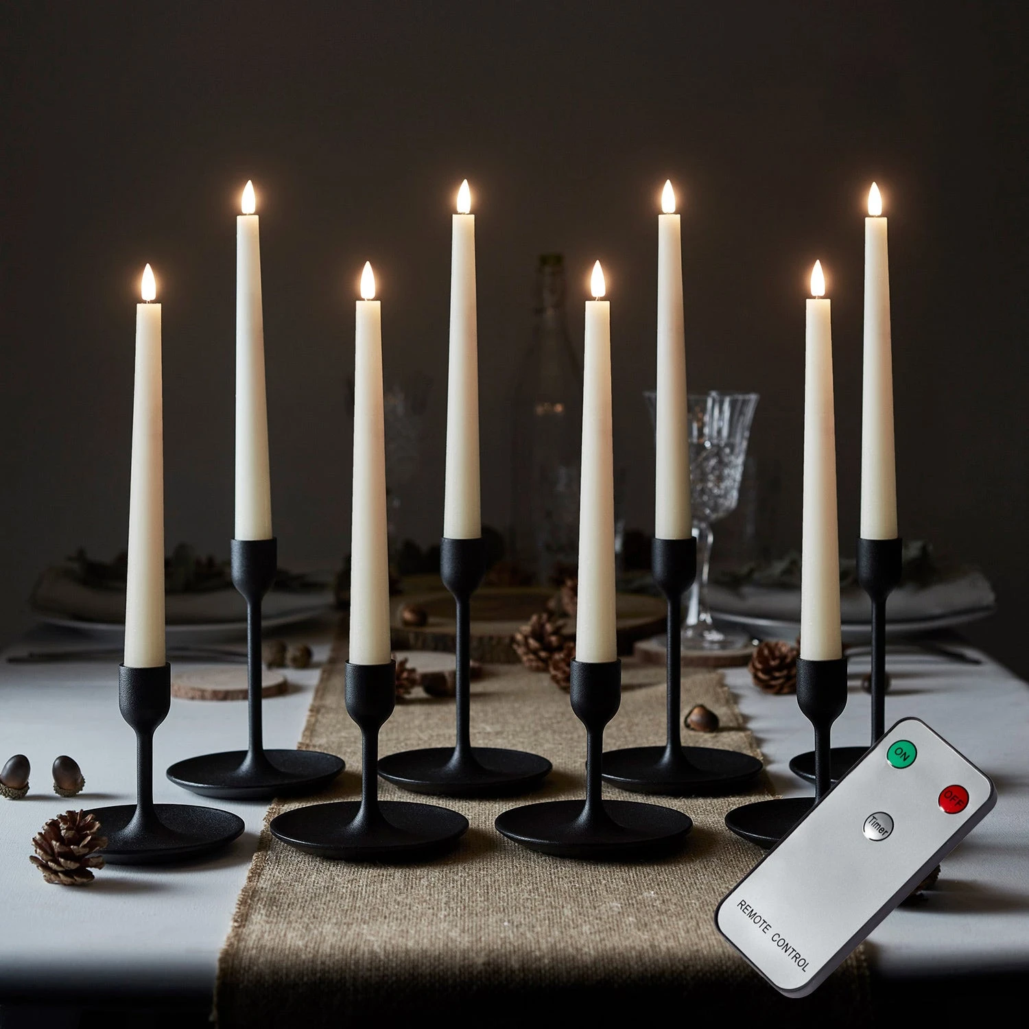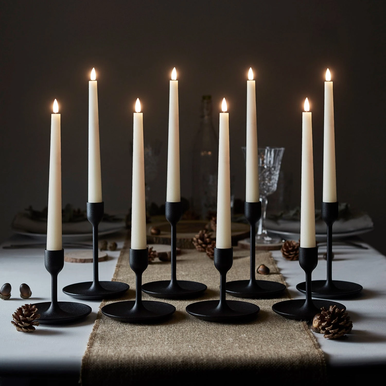 Unser stilvolles Set aus elfenbeinfarbenen Stabkerzen taucht dein Zuhause mit Sicherheit in ein gemütliches Licht! Sie eignen sich perfekt als Teil deiner Tischdekoration oder um eine behagliche Atmosphäre in deinen Räumen zu schaffen. Die LED Kerzen für den Innenbereich werden aus handgegossenem Wachs hergestellt und ihre zart flackernden TruGlow®-Flammen erzeugen den Eindruck von echten Kerzen. Lege ganz einfach die Batterien in den jeweiligen Kerzenboden ein und bediene sie mithilfe der Fernbedienung. Nutze die praktische Timerfunktion, damit sie jeden Tag automatisch zur selben Zeit aufleuchten.
