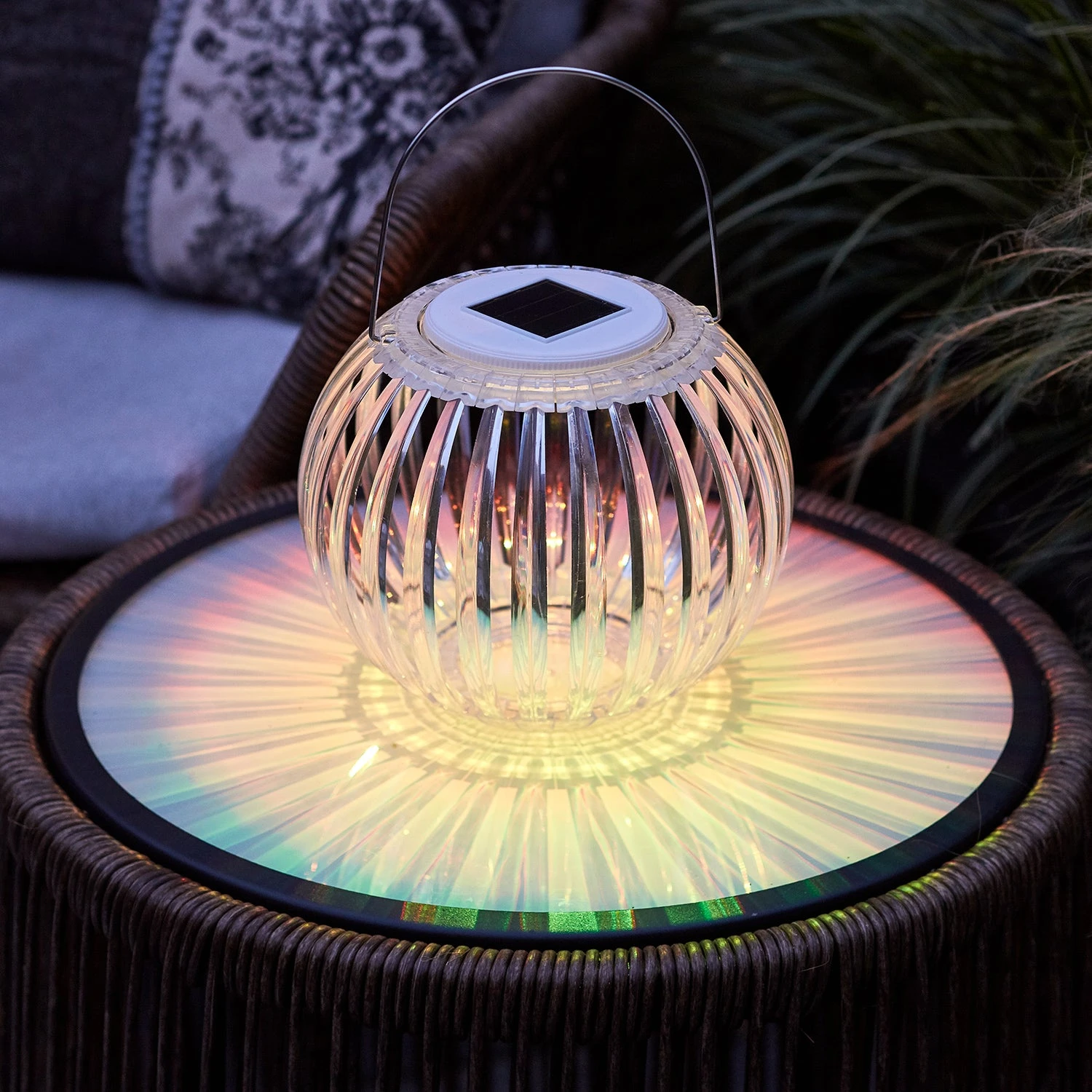 Diese transparente Solar Hängelampe bringt mehr Farbe in deinen Garten! Die farbwechselnden LEDs beleuchten sie dank des kleinen Solarpanels Abend für Abend während der Sommermonate. Stelle sie abends auf den Gartentisch oder hänge sie über der Terrasse auf, um ein angenehmes Ambiente zu schaffen. Bei voller Sonnenaufladung hält die Batterie für bis zu 6 Stunden.