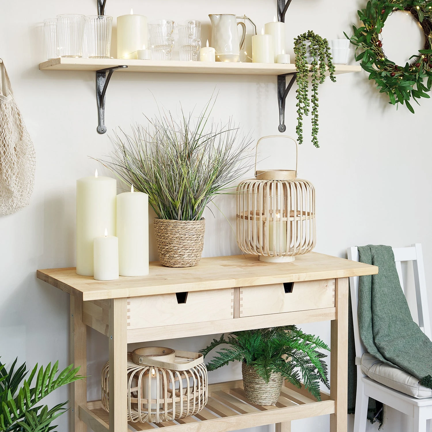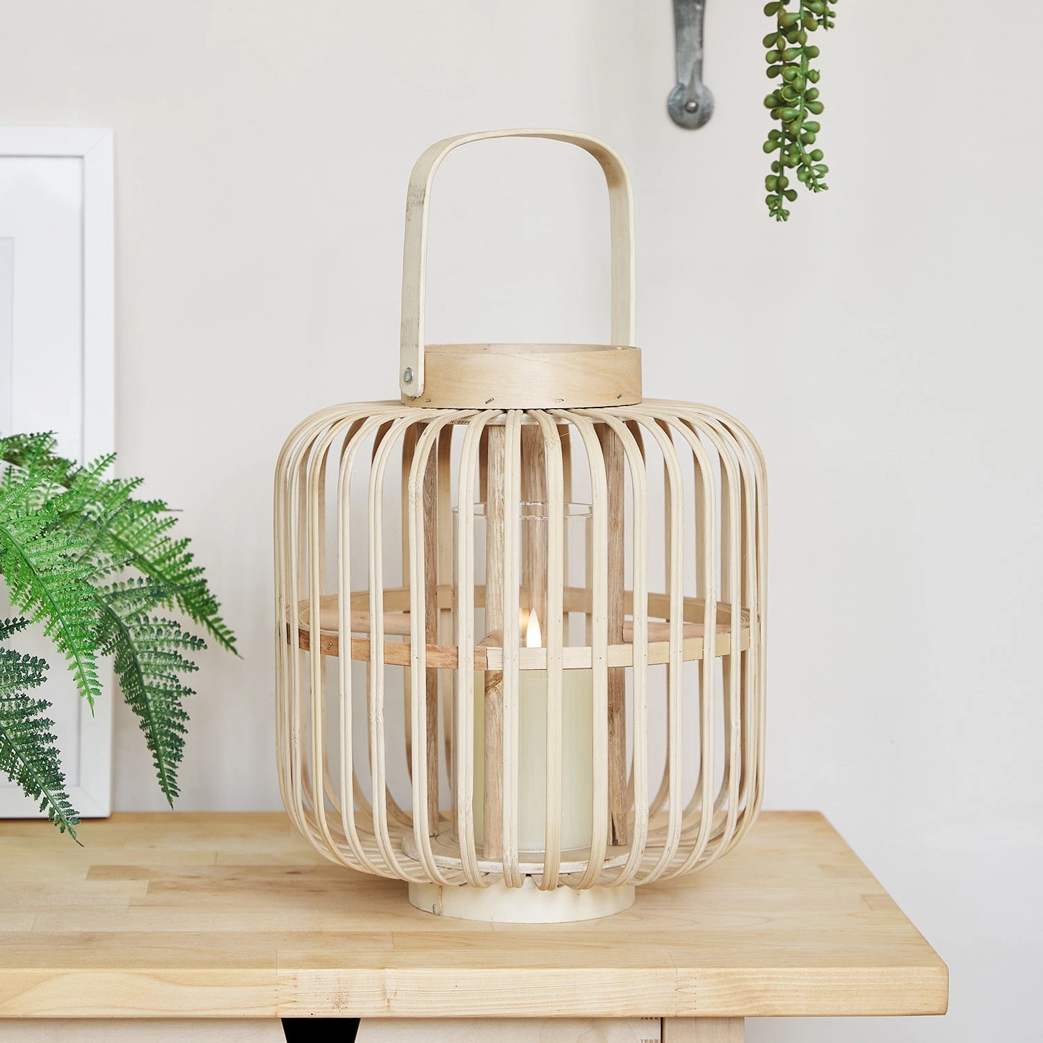 Verleihe deinem Zuhause diesen Sommer ein ruhiges und modernes Ambiente mit unserer großen Bambuslaterne. Sie hat eine Höhe von 31cm und ein stilvolles Design mit natürlichem Finish. Im Inneren der Laterne befindet sich eine fest angebrachte Glasfassung mit einer elfenbeinfarbenen TruGlow® Kerze. Die Kerze wirkt mit ihrer warmweiß flackernden LED Flamme absolut realistisch und verfügt über einen praktischen 6-Stunden-Timer, der sie Nacht für Nacht automatisch aufleuchten lässt. Verwende die Dekoration als Teil deiner Tischdeko oder platziere sie direkt auf dem Boden. Du kannst sie zusätzlich mit der passenden kleinen Bambuslaterne kombinieren, um ein stimmiges Gesamtbild zu erzeugen. Lege einfach 2 x C Batterien in den Boden der Kerze ein und beobachte abends das sanfte Lichtspiel der Laterne.