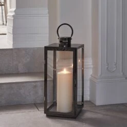 Große LED Laterne Edelstahl Dunkelgrau Mit TruGlow® LED Kerze
