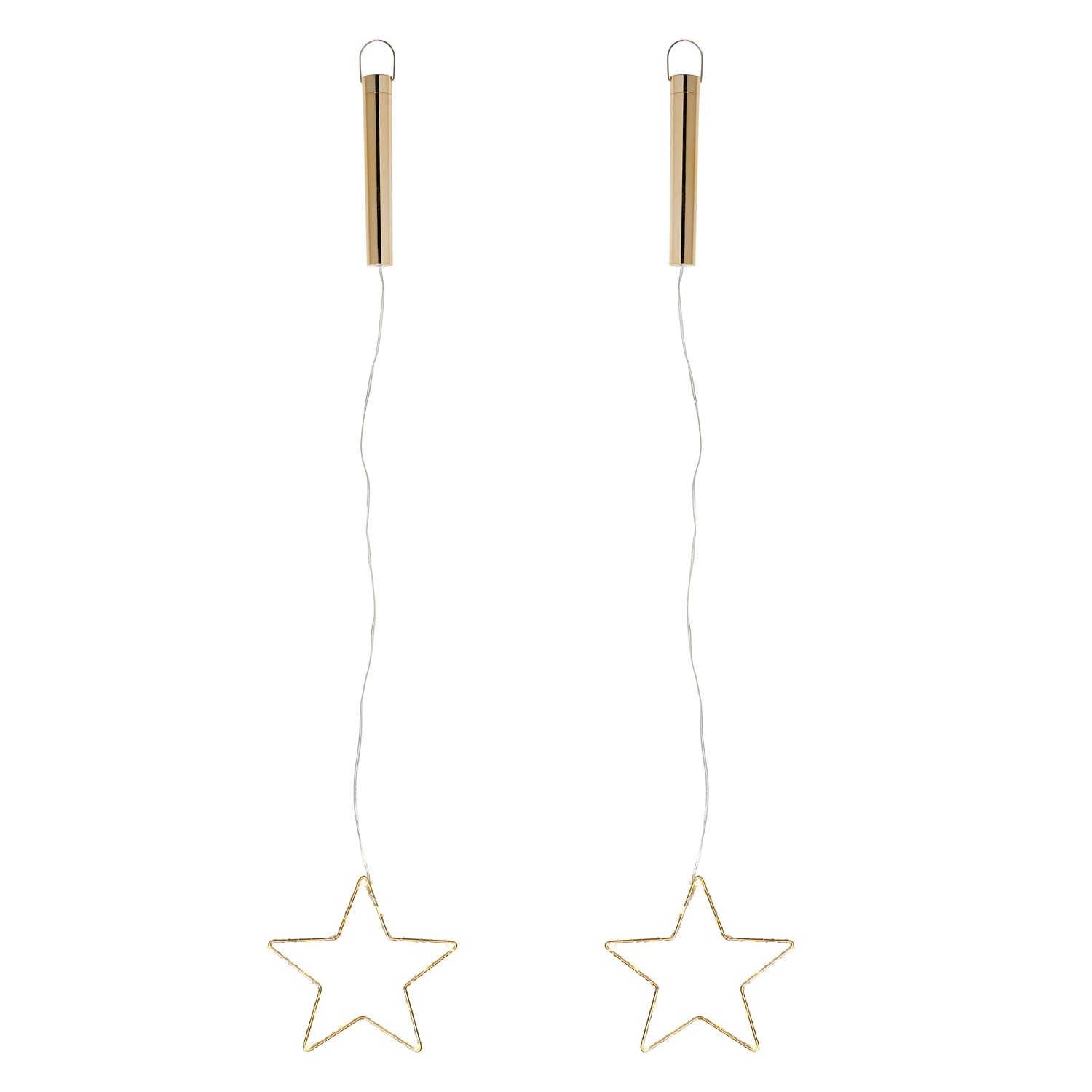 Unsere 2 kleinen goldenen Osby Sterne bringen dein Zuhause zum Funkeln! Sie sind perfekt zum Aufhängen im Fenster, für den Weihnachtsbaum oder als Teil einer festlichen Tischdekoration. Jeder Stern befindet sich an einem 50cm langen Kabel, hat einen Durchmesser von 15cm und ist mit 15 warmweißen LEDs versehen, die ihn elegant leuchten lassen. Ein goldenes Batterieröhrchen befindet sich jeweils am Ende beider Kabel. Lege einfach jeweils 2 x AA Batterien in diese ein und der 6-Stunden-Timer lässt die Lichter jeden Tag zur gleichen Zeit leuchten. Mit dem Haken am Verschluss der Batterieboxen lassen sich die Sterne ganz einfach Aufhängen. Kombiniere dazu unsere anderen goldenen Sterne aus der Osby Reihe.