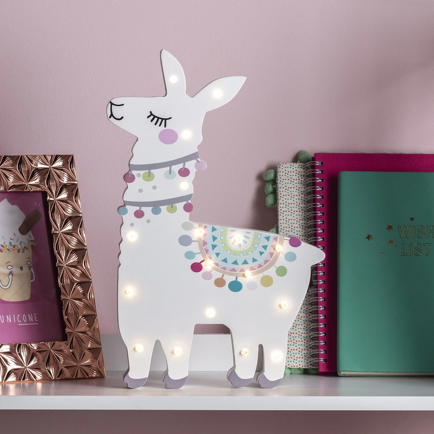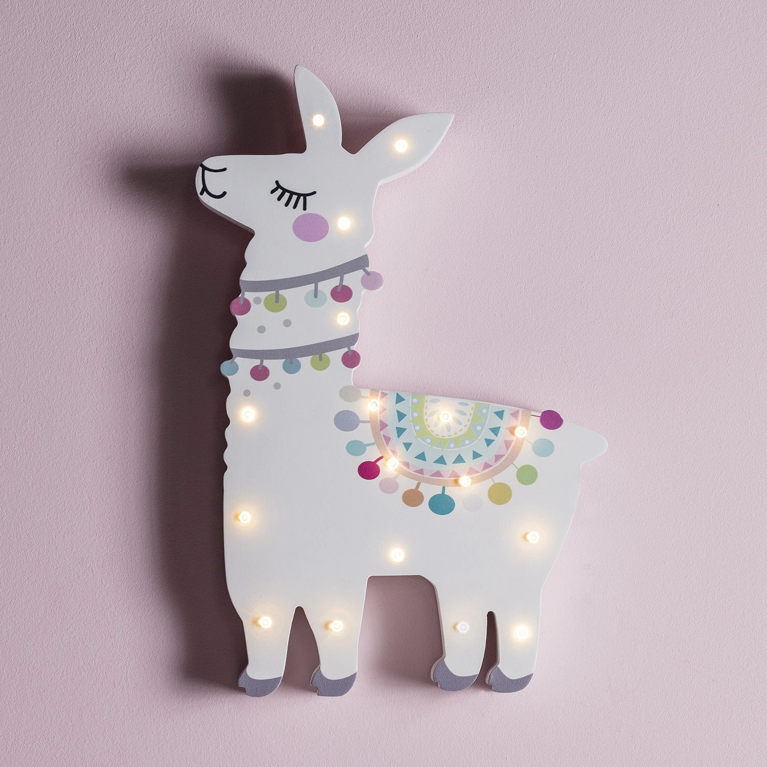 Lamas dürfen dieses Jahr in keinem Kinderzimmer fehlen. Stelle unsere Lamaleuchte auf den Nachttisch deiner Kleinen oder hänge sie mithilfe der Einkerbung an der Rückseite einfach an die Wand. Sobald 2x AAA Batterien eingelegt wurden, kann das Lama an dem schwarzen Schalter, der sich an der Seite befindet, eingeschaltet werden. Wähle “I” zum Einschalten, “0” zum Ausschalten und “II” um die 6 Stunden Timerfunktion zu wählen.