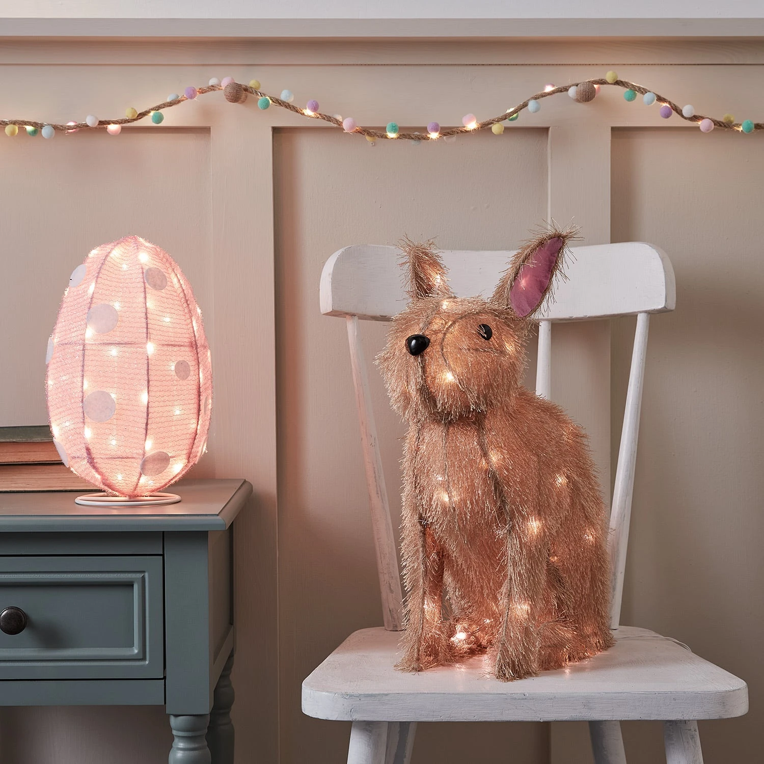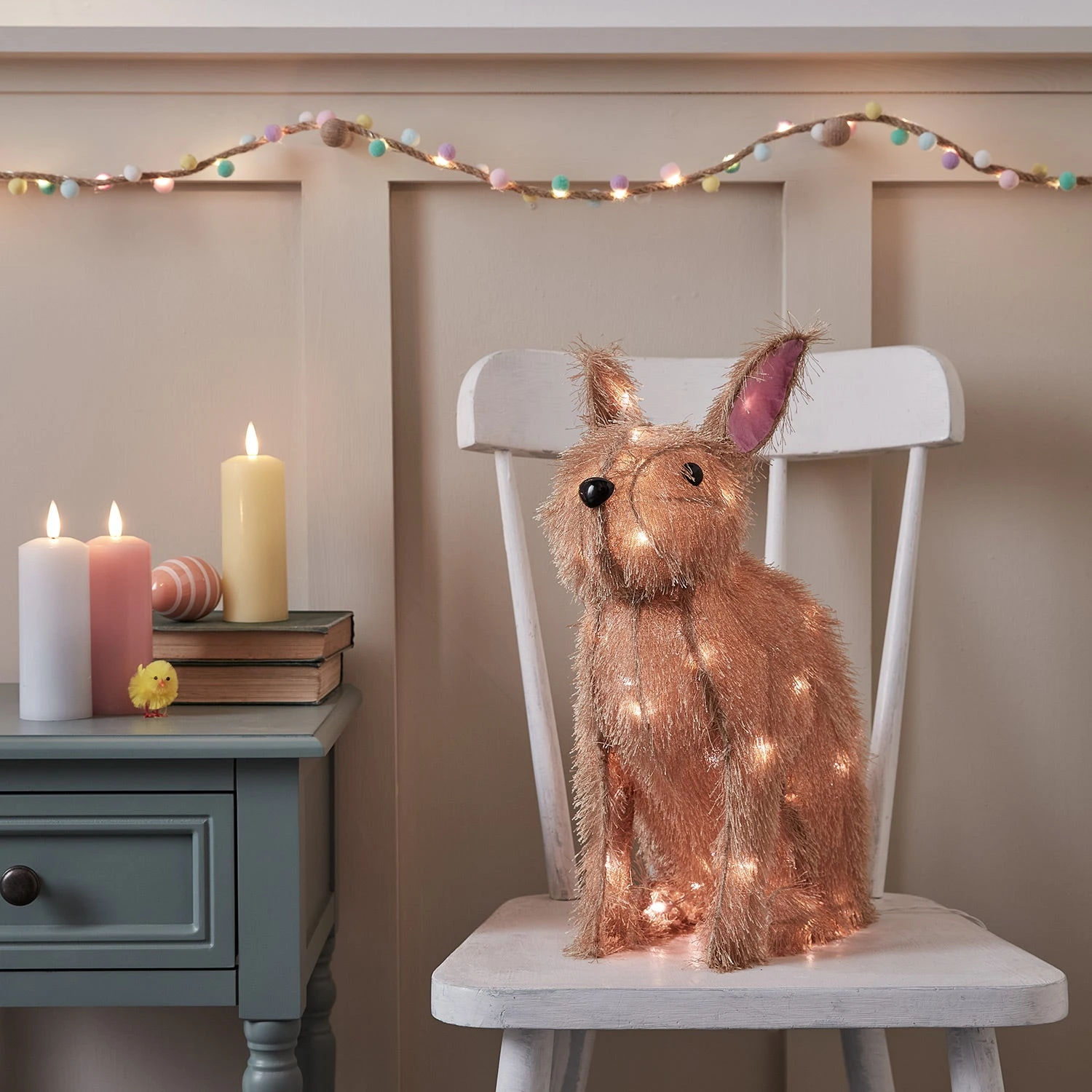 Unsere batteriebetriebene Osterfigur für den Außenbereich ist die perfekte Ergänzung für deine Osterfeier im Freien. Die Hasenfigur wird mit 35 LEDs beleuchtet und ist mit realistischem Fell besetzt, so dass sie perfekt zu deiner Osterdeko sowohl im Innen- als auch im Außenbereich passen wird. Setze einfach 4 x AA Batterien ein, um einen statischen Glanz zu erhalten oder aktiviere die optionale Timerfunktion für eine automatische Beleuchtung jeden Tag zur gleichen Zeit.