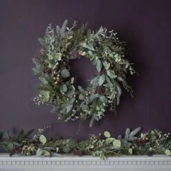 45cm Weihnachtskranz Und 2m Weihnachtsgirlande Mit Kiefer, Eukalyptus Und Goldenen Beeren