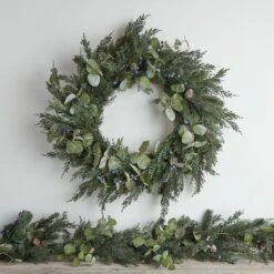 45cm Weihnachtskranz Und 2m Weihnachtsgirlande Mit Kiefer, Eukalyptus Und Goldenen Beeren