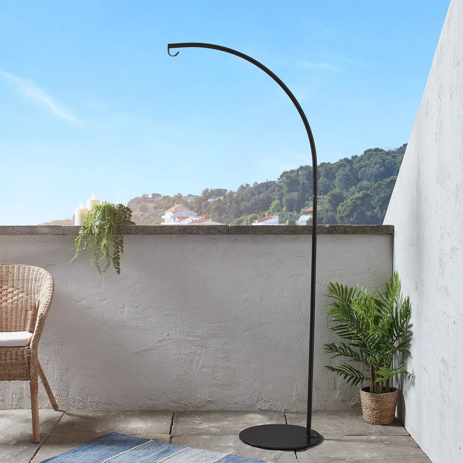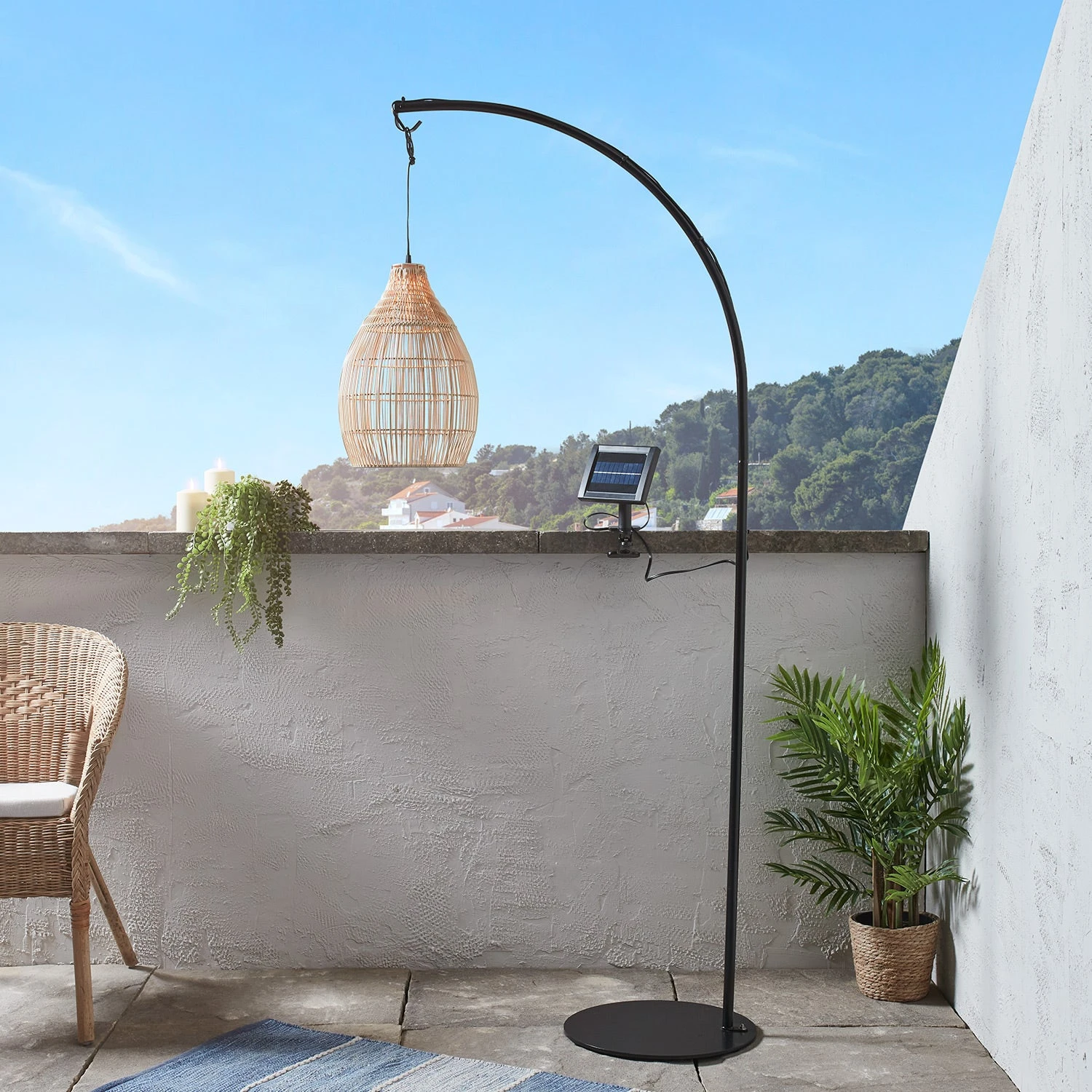 Unser eleganter Lampenfuß samt Hängelampe lässt deinen Außenbereich diesen Sommer ganz unkompliziert erstrahlen. Die Lampe besteht aus robustem Kunststoff in Rattanoptik und eignet sich perfekt für den dauerhaften Einsatz im Freien. Der Eisenständer hat eine Höhe von 192cm und kann im Garten oder auf dem Balkon platziert werden, um eine helle und gemütliche Atmosphäre zu schaffen. Seine schlichte schwarze Farbe wirkt modern und sorgt dafür, dass die Hängelampe jederzeit im Mittelpunkt steht. Stelle ihn einfach an einen sonnigen Platz im Freien und befestige die Hängeleuchte am oberen Ende, um den ganzen Sommer eine unkomplizierte Beleuchtung zu genießen.