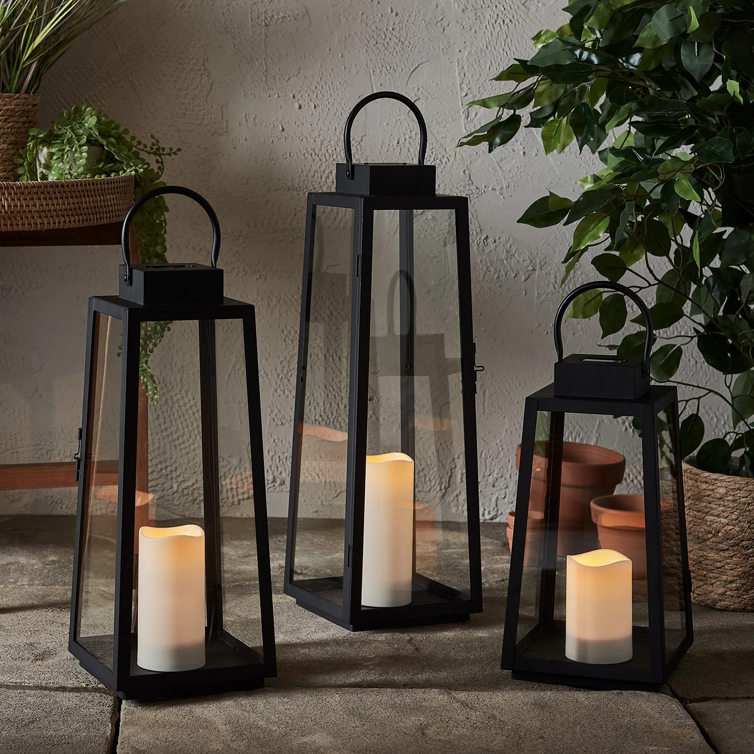 Die elegante schwarze Metalllaterne mit einer weißen Outdoor LED Kerze ist das perfekte Accessoire für deinen Garten. Mit einer Höhe von 35cm sowie einer Breite von 18cm kannst du die Laterne auf dem Tisch oder auf dem Boden platzieren und mit unseren anderen, unterschiedlich hohen Trapez Laternen kombinieren (separat erhältlich), um bei Einbruch der Dunkelheit noch mehr Lichterglanz zu verbreiten. Stelle sicher, dass sich die Laterne tagsüber zum Aufladen an einem sonnigen Platz befindet, sodass du dich am Abend auf eine bis zu 8 Stunden lange Beleuchtung freuen kannst.