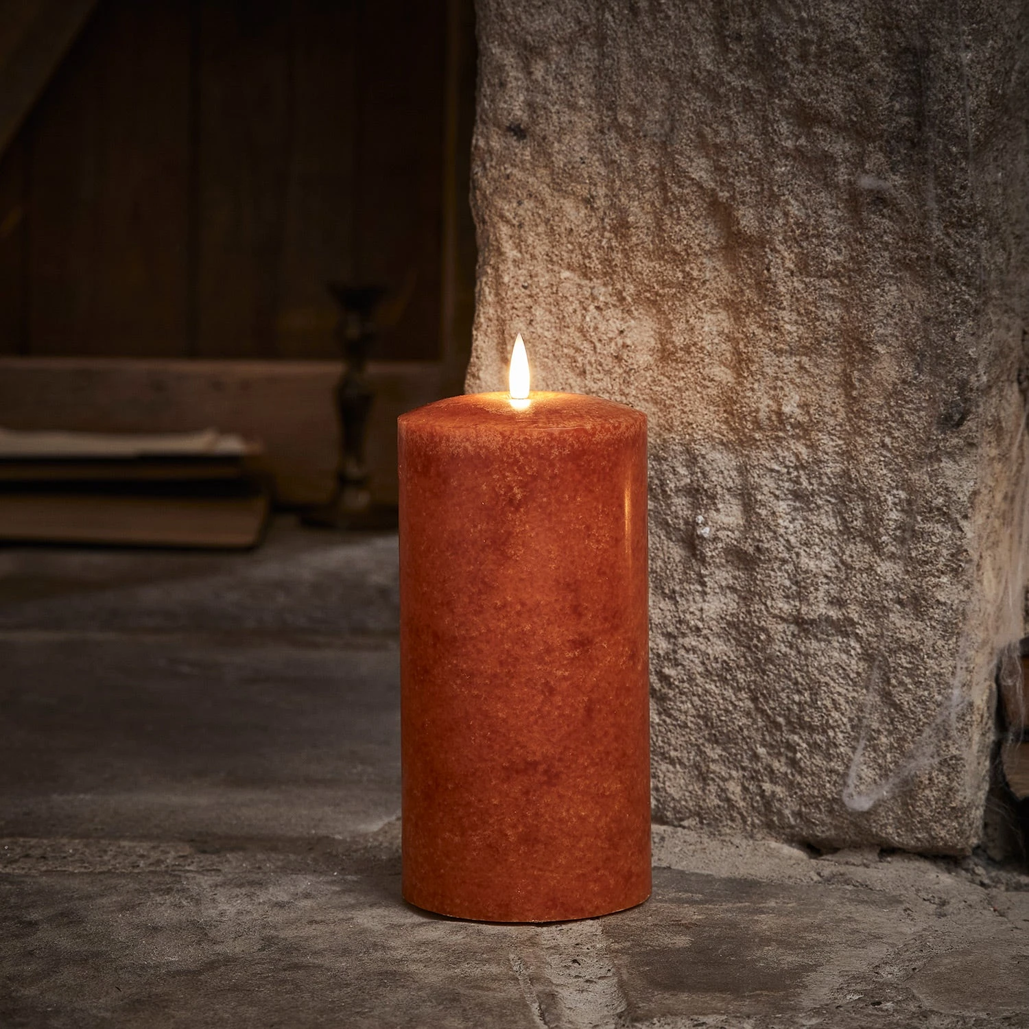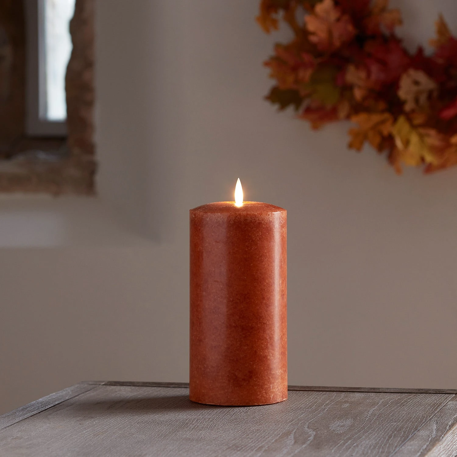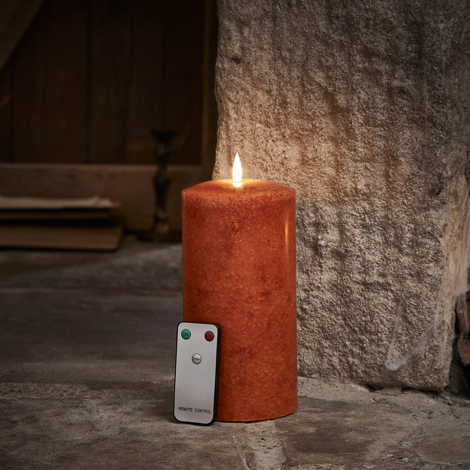 Mache es dir diesen Herbst mit unserer TruGlow® Kerze gemütlich! Diese Kerze ist perfekt, um deinen Räumen ein warmes, herbstliches Licht zu verleihen. Mit einer Höhe von 20 cm und einem melierten orangefarbenen Finish spiegelt sie die wechselnde Farbpalette draußen wider und heißt den Herbst in deinem Zuhause willkommen. Unsere TruGlow® Kerzen bestehen aus handgegossenem Wachs und ihre innovative Technologie ahmt das Flackern echter Kerzen perfekt nach. Die warmweiße LED-Flamme bleibt völlig kühl – perfekt für Familien mit kleinen Kindern oder Haustieren. Lege einfach 2 AA-Batterien in den Kerzensockel ein und verwende die mitgelieferte Fernbedienung, um die Kerze mühelos ein- und auszuschalten oder wähle die optionale 6-Stunden-Timer-Funktion, um dein Zuhause jeden Abend zur gleichen Zeit in ein gemütliches Licht zu tauchen.