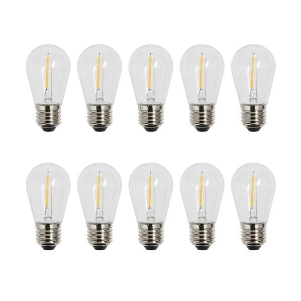Dieses Ersatzbirnen wurde ausschließlich für die Verwendung mit unseren Ultimate Connect Lichterketten entwickelt. Hergestellt aus transparentem Kunststoff, enthält das Set 10 warmweiße E27-Glühbirnen, die das gleiche stilvolle und stabile Design wie unsere warmweißen Ultimate Connect Glühbirnen haben. Sie lassen sich ganz einfach anbringen. Stelle dabei aber unbedingt sicher, dass die Lichterkette vorher ausgesteckt ist, schraube die alten Glühbirnen aus den Fassungen und setze dann die Neuen ein. Prüfe nochmal, dass sie richtig befestigt sind, bevor du die Beleuchtung einschaltest.